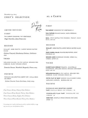 The Dining Room harkens back to the days of dining for the sheer pleasure of it, and enjoying wonderful culinary experiences.